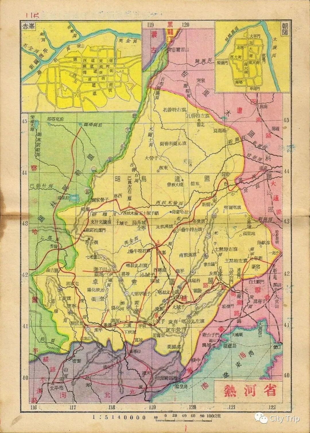 (1936年亚新地学社出版的《袖珍中华全图》中的热河省地图)▼