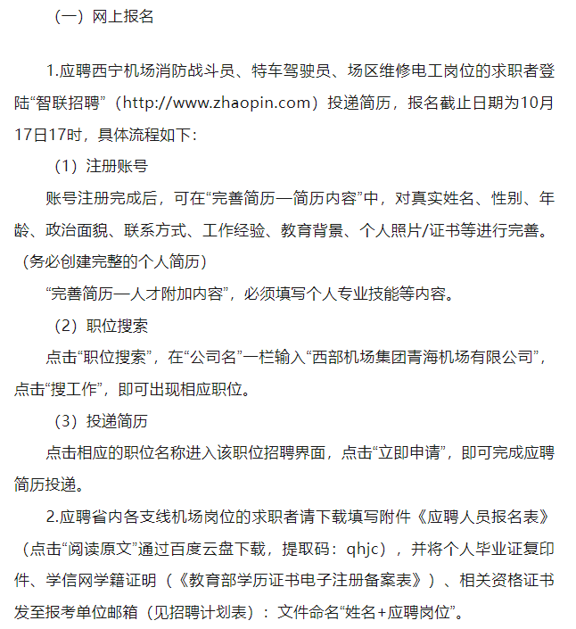 3.每位应聘者只可投递一个岗位(不能同时投递西宁机场和支线机场的岗位、不能同时投递西宁机场多个岗位、不能同时投递支线机场多个岗位),若出现重复投递现象,取消应聘资格。