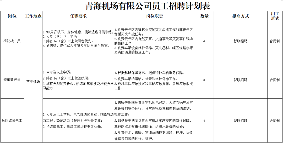 注:招聘后续名单及时间安排请关注“青海机场有限公司”微信公众平台。