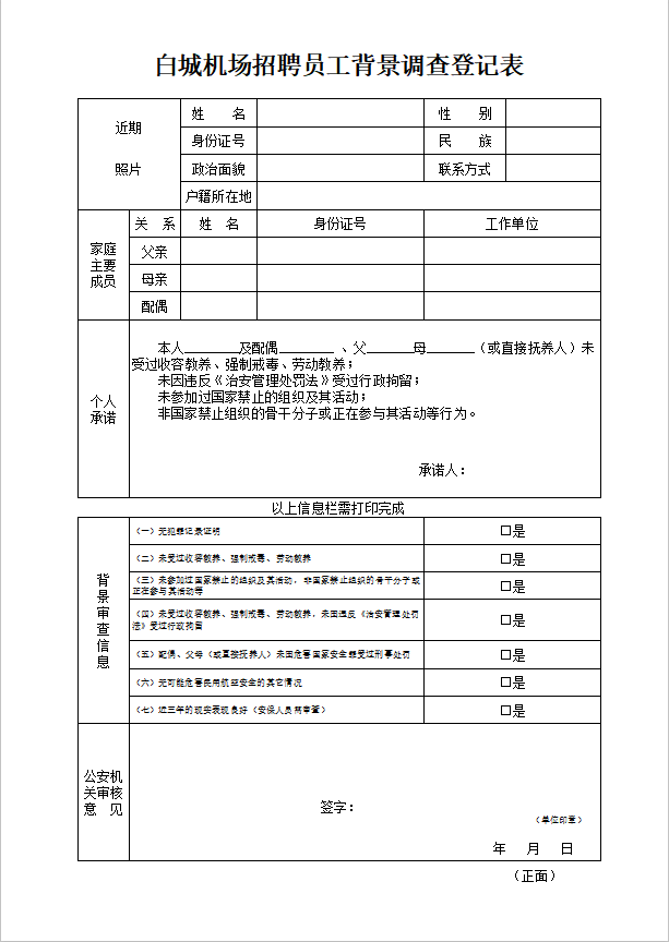 2、背景调查登记表:请以图片内信息为模板,按照要求提交背景调查信息。