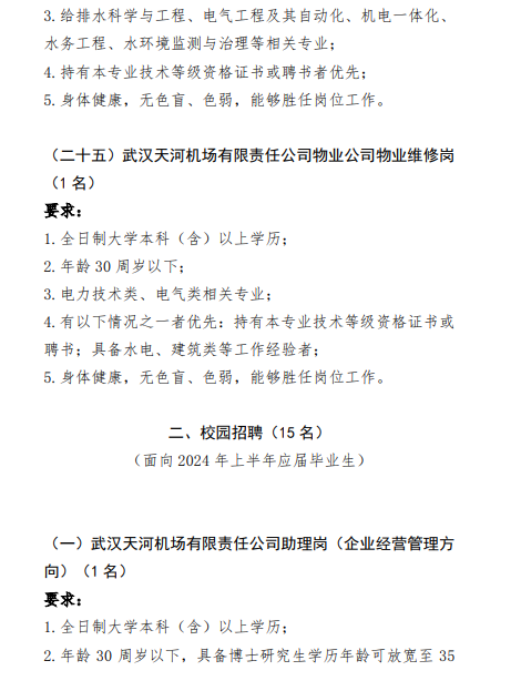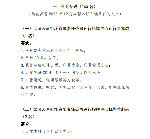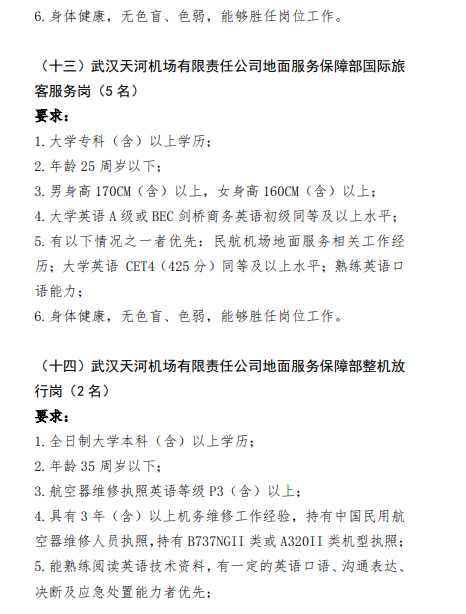 为满足公司运营发展需要,优化人才结构,武汉天河机场有限责任公司面向社会和校园进行公开招聘,现公告如下: