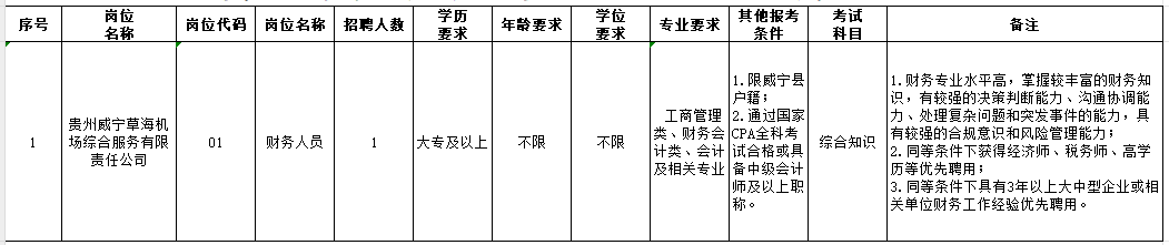 (四)笔试科目:详见《贵州威宁草海机场有限责任公司2023年招聘岗位信息表》。