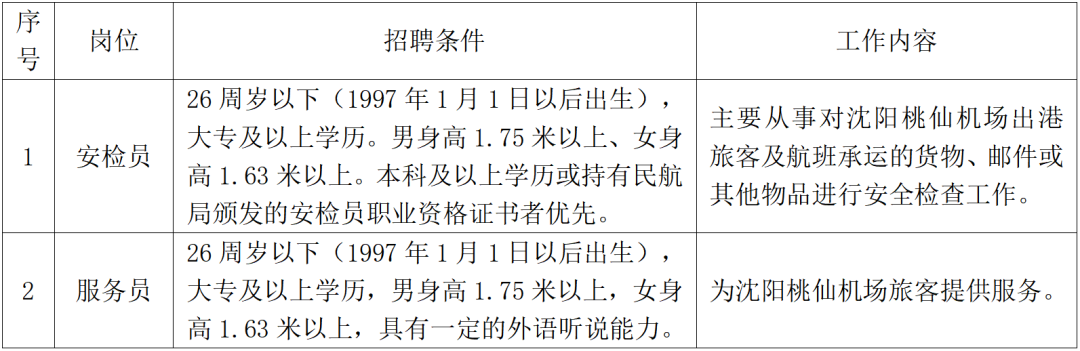 报名方式:本次招聘采用手机微信报名方式,请报名者关注“沈阳桃仙国际机场”微信公众号进入“机场资讯”→“机场招聘”菜单,点击“在线提交简历”,按要求填写完整。报名与考试时使用的身份证应一致。