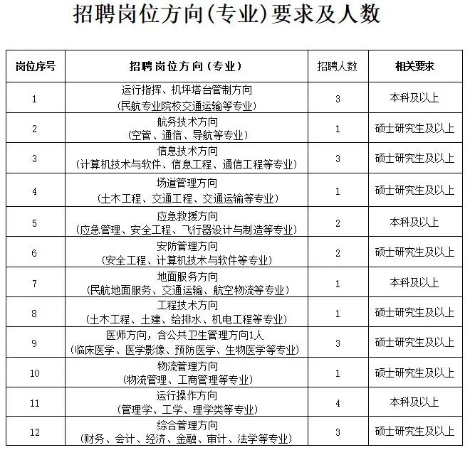 招聘运行指挥、机坪塔台管制等岗位方向,全日制普通高等院校2023年应届大学毕业生,共计25名。