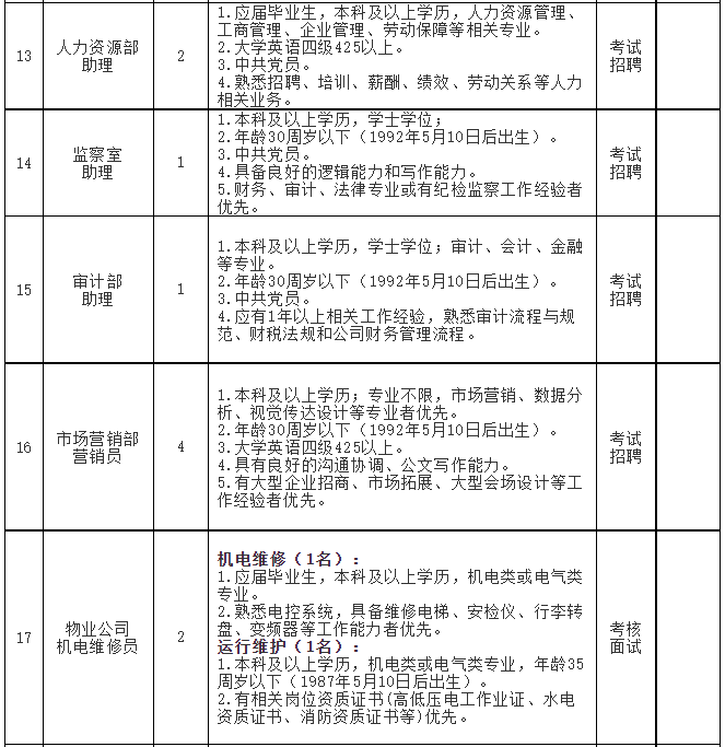 3. 以上部分应届生招聘岗位如有参加国企拓岗招聘活动或高校毕业生招聘活动,招聘工作将合并开展。