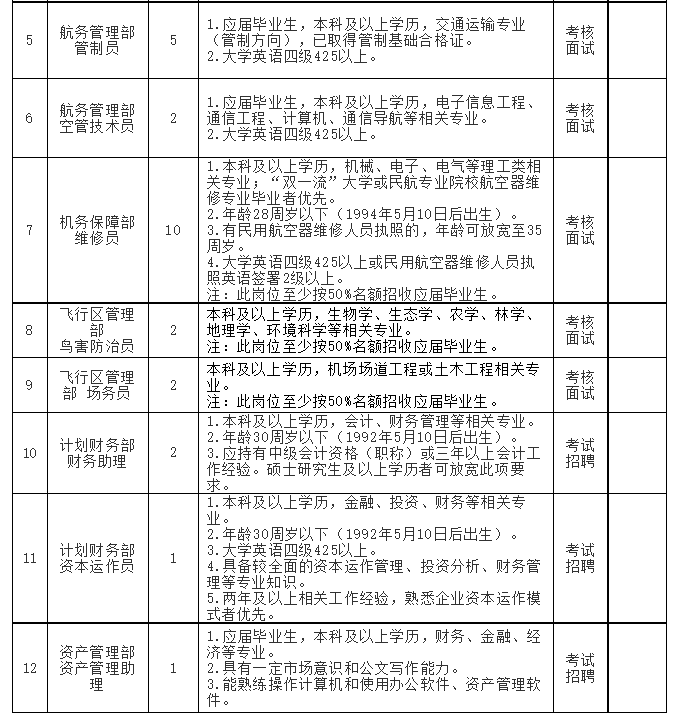 机场公司及其权属公司拟面向社会公开招聘20个岗位共86名工作人员,具体招聘岗位及任职要求如下:
