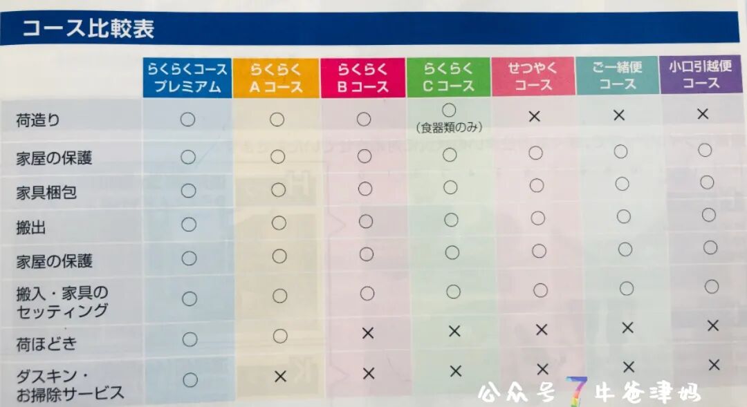 日本的搬家公司有不同的服务套餐可以选择。我本来想图省事,也顺便享受一下传说中日本细致到变态的搬家服务,就选了下图中的B套餐。