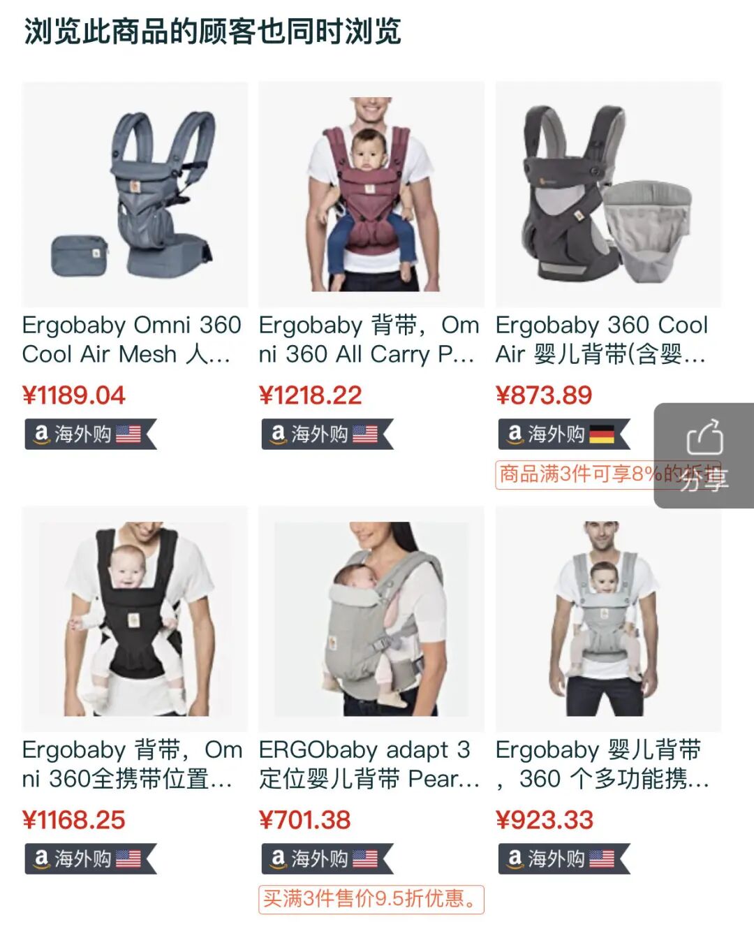 拉到产品详情页下面,还有Ergobaby不同颜色和款式可以选择。
