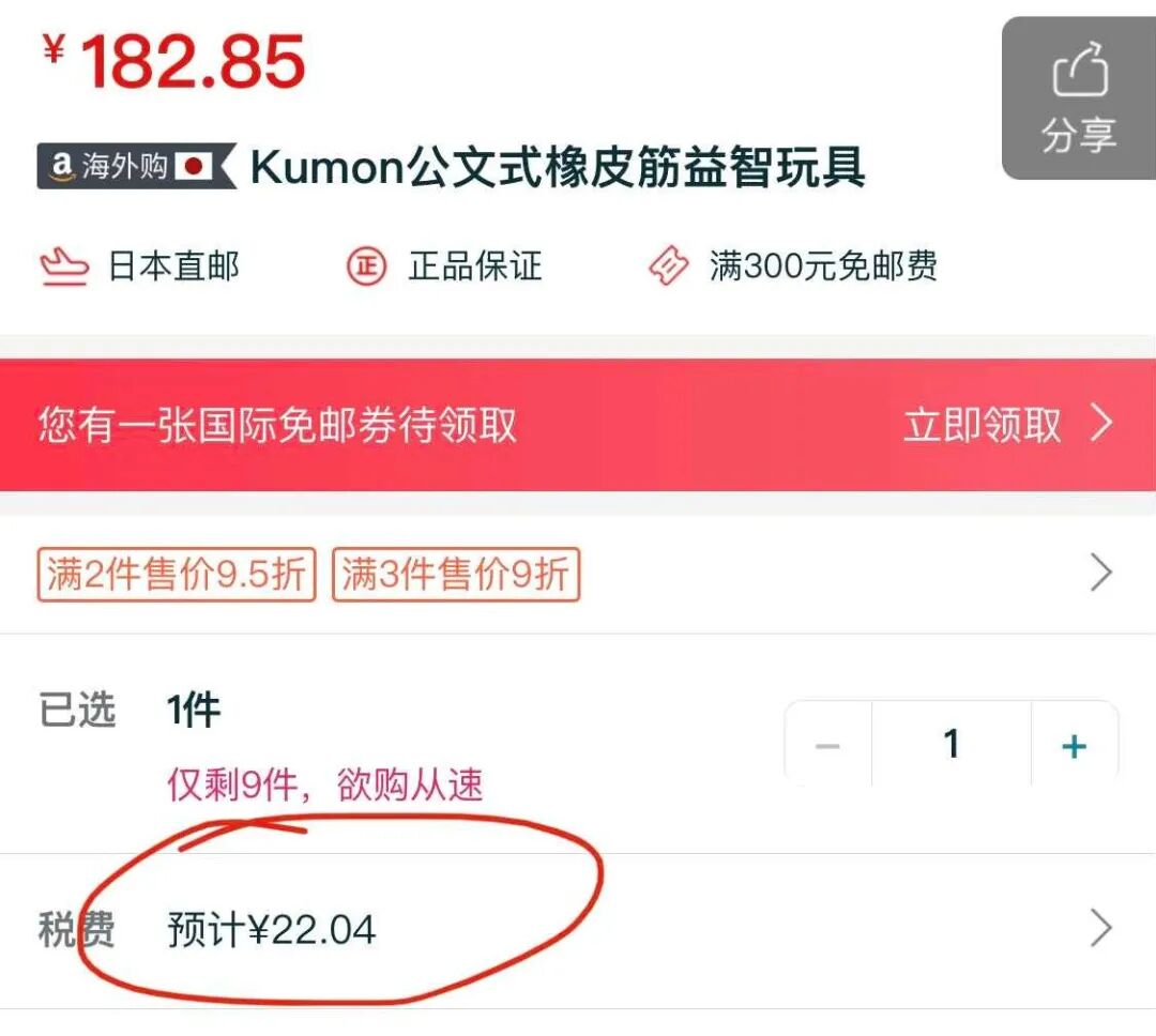 亚马逊海外购价格为"未含税价",含税也还是便宜不少
