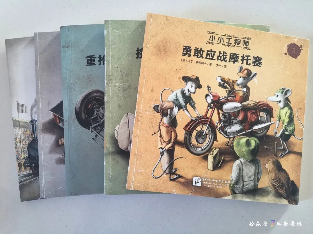 全套包括:汽车、飞机、摩托、房屋、火车5大工程主题,贯穿于主人公小老鼠阿尼的成长故事中。阿尼是一只跛脚的小老鼠,同伴的嘲笑与孤立,让他很自卑。从造一辆汽车到盖一栋新房,阿尼逐渐成长为一名优秀的工程师,更在此过程中,逐渐重新认识自我、找回自信、收获幸福。*后还追溯了主人公阿尼的曾曾祖父与火车建造的一段奇缘。