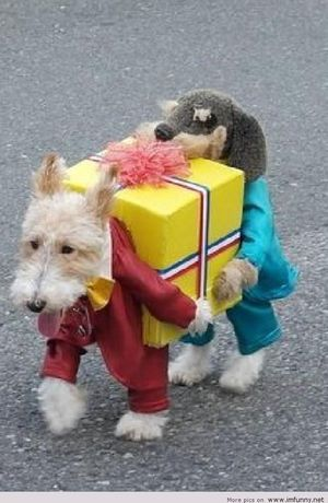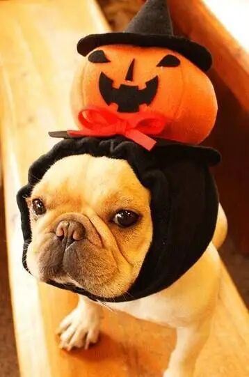再仔细一看,这些狗子穿戴的全是万圣节主题。什么南瓜发卡啦、南瓜礼帽啦、南瓜连体裤啦、蝙蝠斗篷啦......