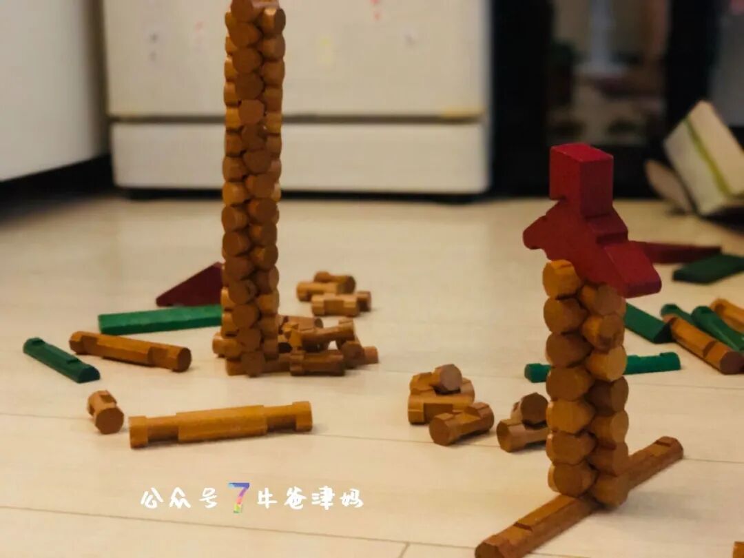 小7眼睛瞪得老大,开始在一旁有样学样,搭了一个小版的。
