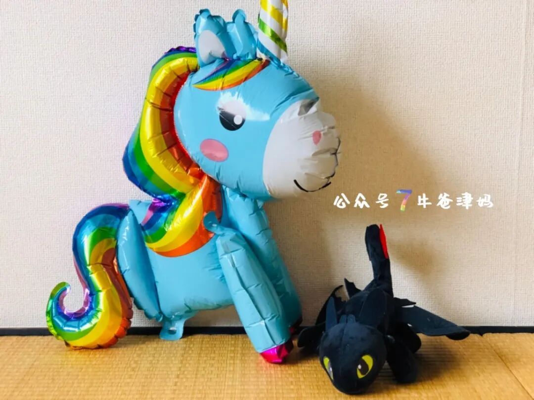 小7终于撇过头,看了一眼小黑龙,爸爸欣喜若狂。可两秒之后,她又继续玩起我在百元店买的独角兽气球来。