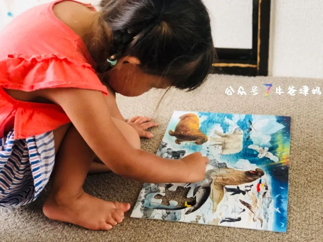 小7爸一上位(其实也没教多少),小7果真就顺顺当当地把整副拼图拼完了。