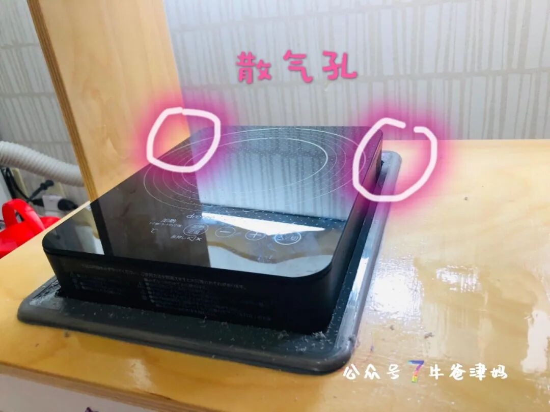 再检查一下电磁灶的下部。底部和左右两侧的散气孔,也全部都露在了外面,完全没有被遮挡到!👌
