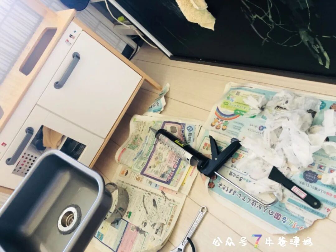 原宜家儿童厨房后面没有挡板,所以我得安一块,防止溅油和漏水。