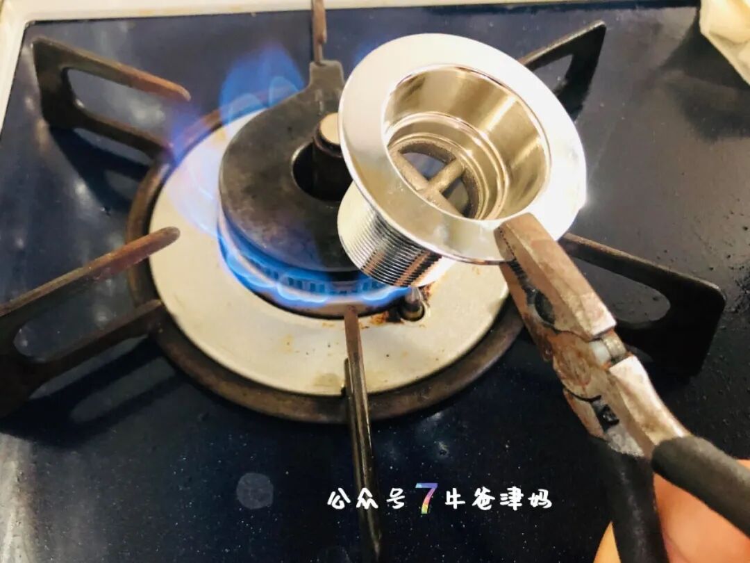 透了大概几十口气吧,才烫出来了一个大圆洞。丑了点,但总算能把下水口塞进去了!✌️