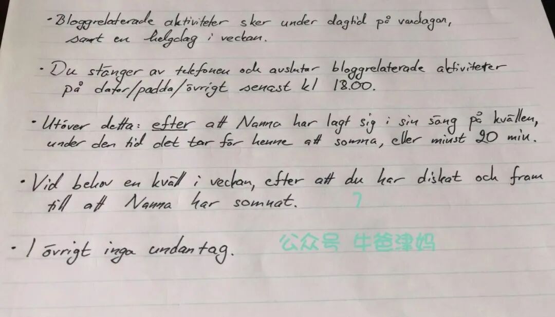 点评:如果小7一上床就秒睡,我还是可以有20分钟。这“单位”规定既严格又人性化,不愧是北欧人“开”的啊!