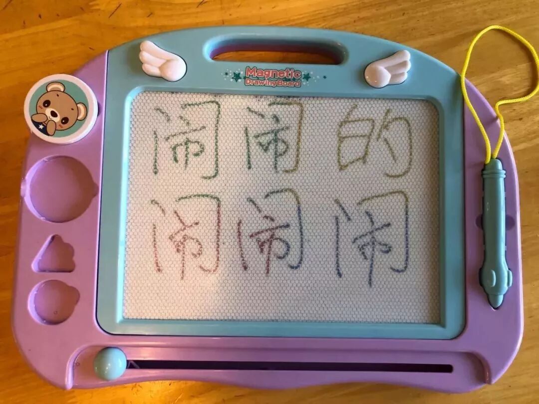 我也很好奇,在小孩大哭大闹,妈妈即将发作的时候,哪家的爸爸能够有定力坐在一旁抱着女儿的小画板一笔一划写大字!