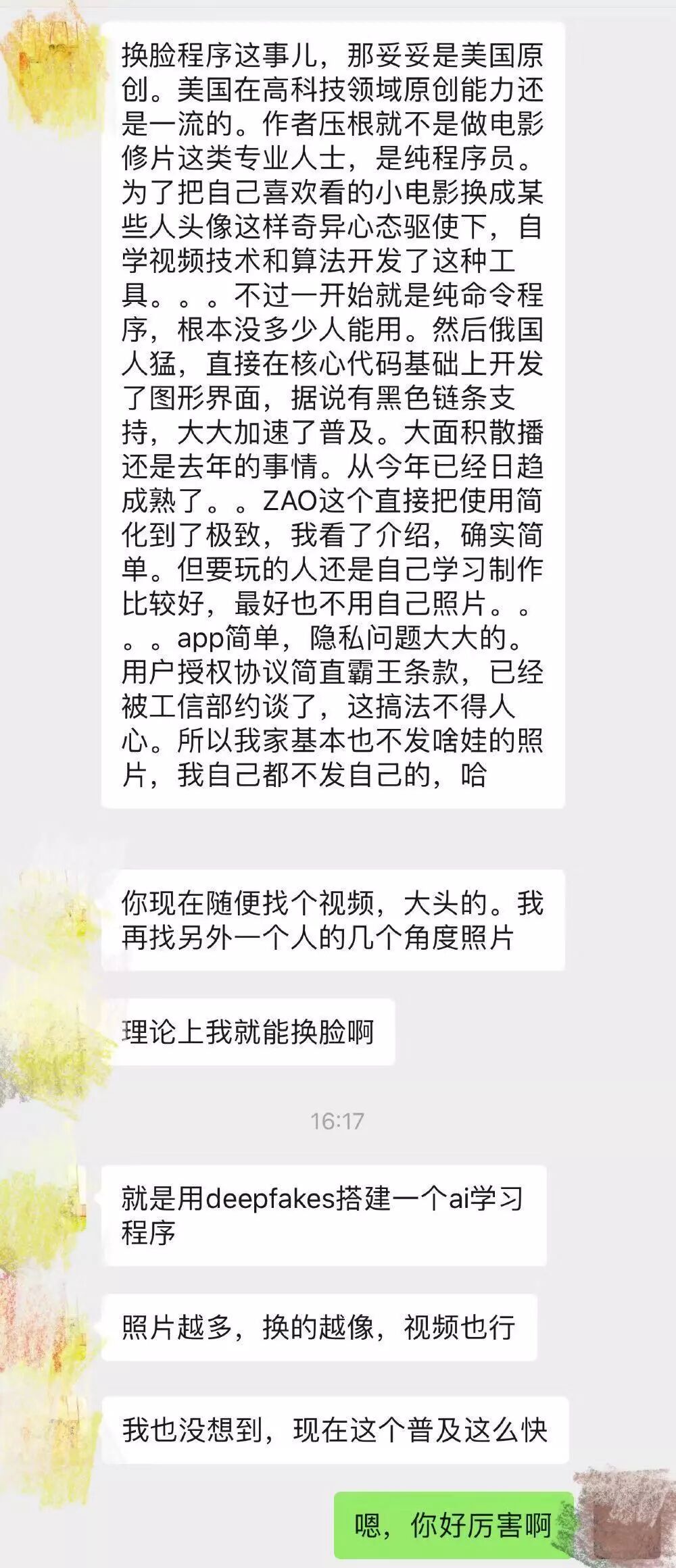 我在朋友圈转了这篇文章后,一个深藏不露的技术爱好者给我评论了一句:“deepfakes傻瓜版”。