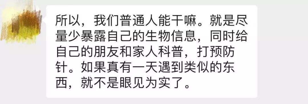 想一想,假如有一天,在路上碰到路人甲,那人现场拍了张我的照片,就知道了我生活过往的点点滴滴。再通过换脸技术搞一段视频发给我家人,说我最近在哪和谁吃了什么饭,钱包护照被偷了......