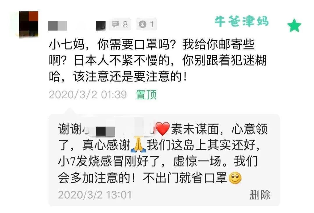 除了父母和朋友,还有素未谋面的读者同学说要从中国给我们寄口罩!(顺便说下,口罩目前是没买到,但厕纸我家还有存货)