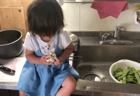 因为自己全职带娃,生活和教育无法割裂开,而这正体现了杜威所说“教育即生活”的真谛。妈妈做饭,她来拣菜;妈妈擦灰,她来拖地;妈妈买菜,她来付钱......一个成人的基本生活技能对年幼的她来讲已经不再陌生。