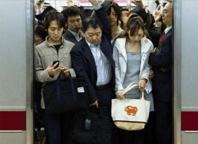 在日本坐地铁,观察不同时段的乘客人群组成也很有意思。