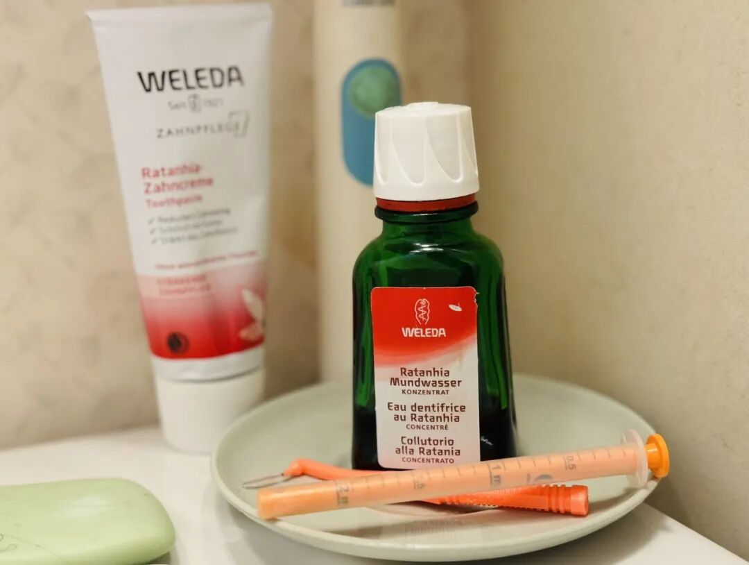 以前她常年用维蕾德漱口水就没犯过牙疼的毛病,后来买不到就用盐水替代,时间一长又不行了。好在我在瑞典还剩半瓶,就让她不稀释直接把浓缩液用滴管滴在患处。