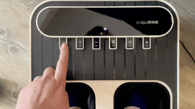 这台足疗机是带气囊全包裹,包括后脚跟左右两边的穴位也能按到。脚踩进去之后,大家可以稍稍前后移动找到被按压的最佳位置。
