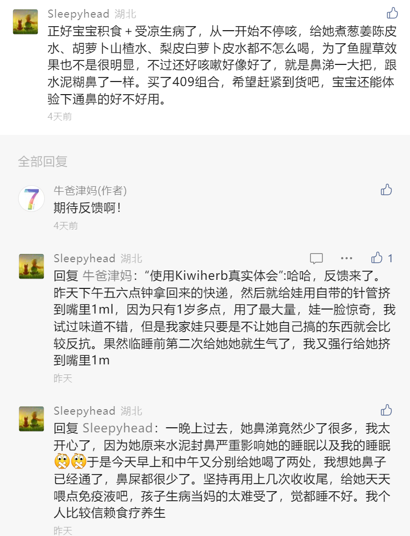 这次发奖不拖欠,上周才返团的Kiwiherb,就有第一次尝试的妈妈好评反馈来啦!