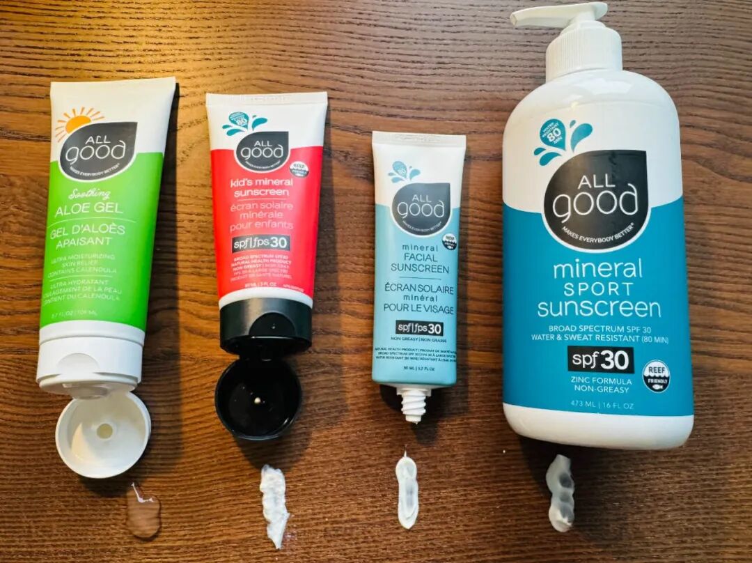 All Good防晒霜非常细分和专业,区别主要在有机植物成分和护肤配方上: