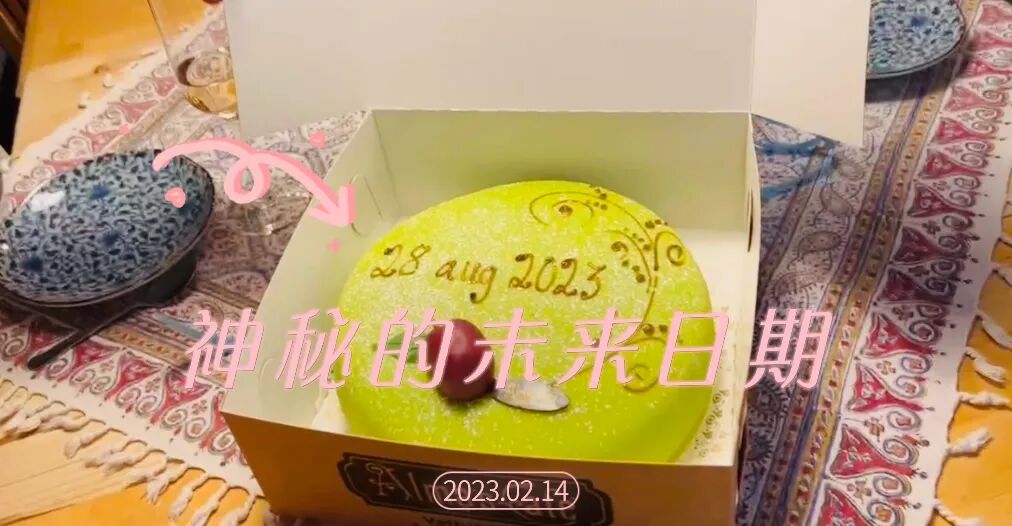 上周六,婆婆收到一个写着神秘未来日期的蛋糕。