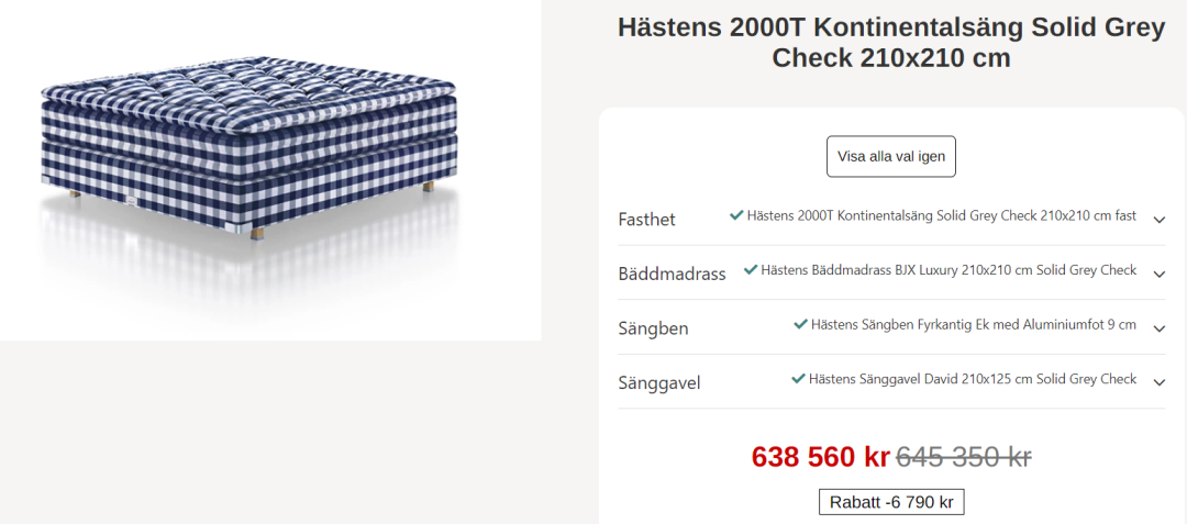 我能找到瑞典卖床品的知名连锁店上显示同款最高配置床垫(2.1×2.1米)合约43万出头人民币。