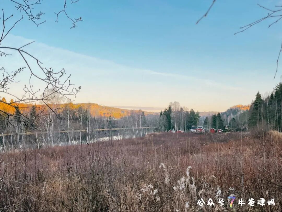 透过厨房的窗子和光秃的树丛,你能看到一处紧靠河边的红色瑞典木屋,那儿住着离婆婆家最近的邻居——