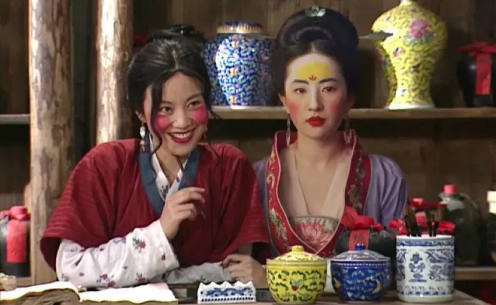 除了电视上见过的高原红,我几乎从没见过谁的两颊有这样通红!远远看真就像下图花木兰这样涂了两坨圆圆大红色的胭脂。
