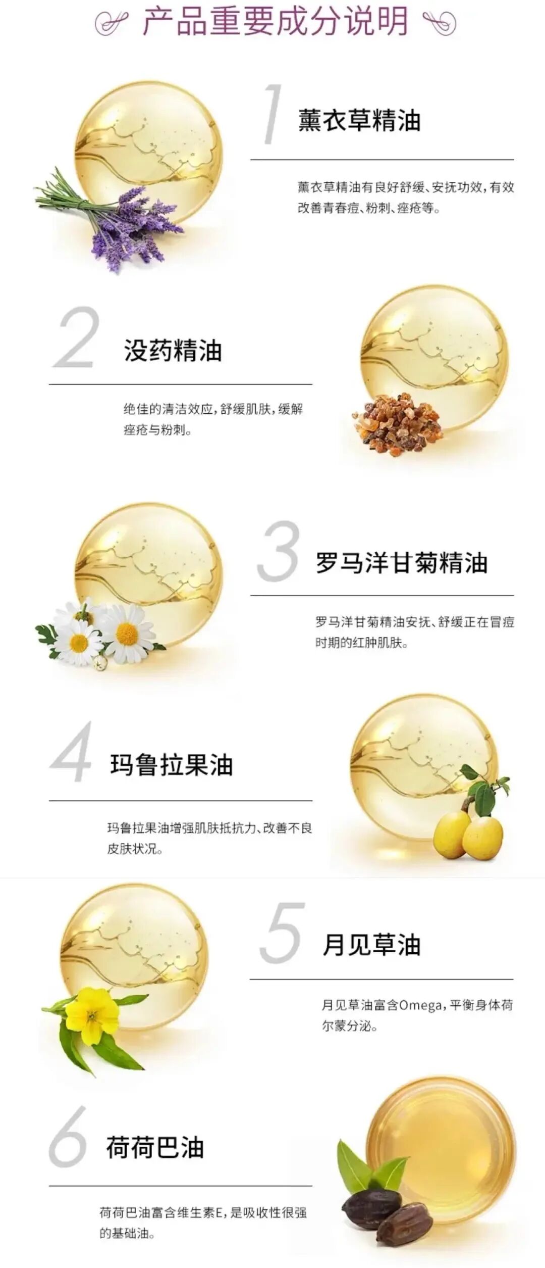 因为是整个植物全成分在协同起作用,这款清爽的精华油不但适合痘痘肌,也可以用来镇定敏感肌肤,同时它能够有效平衡油脂分泌,在油脂分泌过多时控制油脂分泌,在油脂分泌不足时调节皮肤的油润保湿程度。