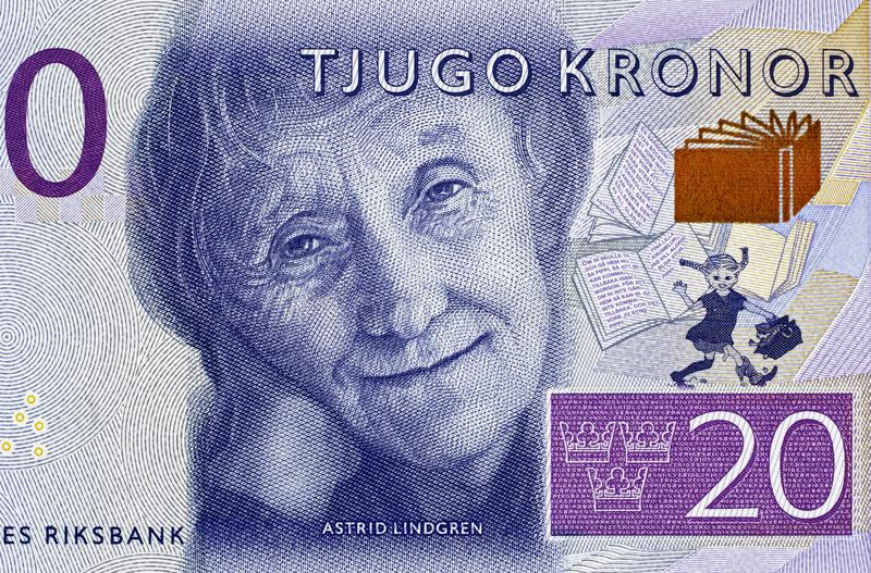 这张20元钞票上印着的老奶奶叫“Astrid Lindgren”,一个我早晚会安利给你认识的女人(和她写的童话故事)。
