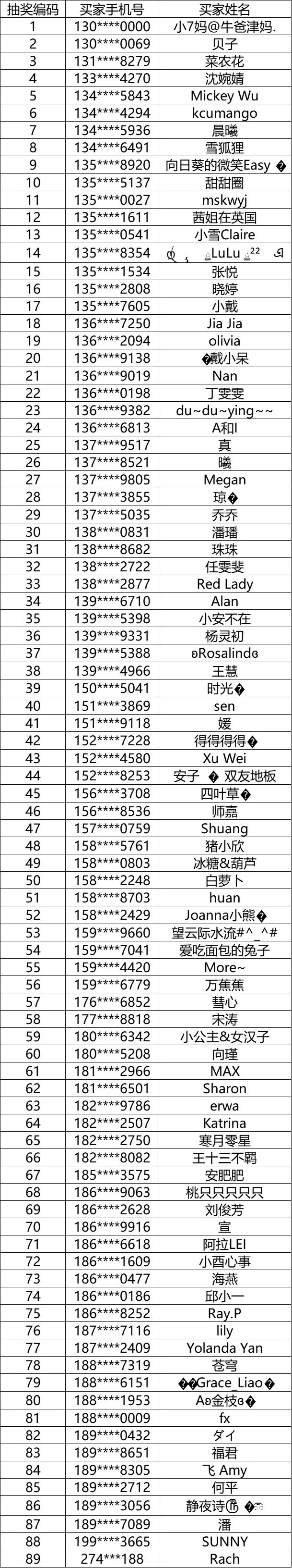 从“购买两盒以上”的最终订单里,按“小决定”抽奖号码出现的先后顺序分别获得: