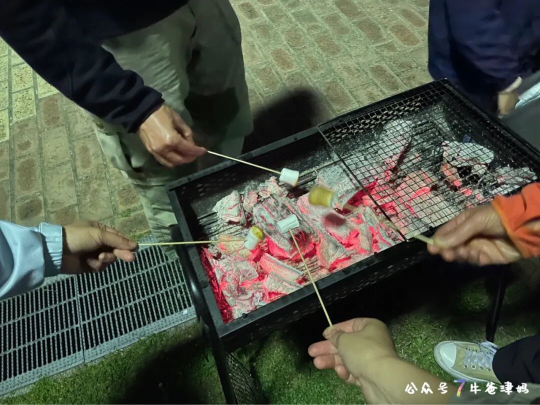 四个大人给自己烤棉花糖