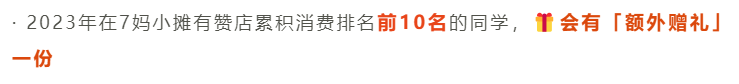 23年在7妈小摊有赞店累积消费排名前20名的同学,🎁会有「额外赠礼」一份