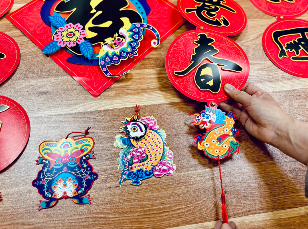 「龙门迎福」的上下联选取雍正皇帝的自撰春联“岁岁平安节,年年如意春”。对联采用双层设计,简单DIY即可呈现出立体效果。还有精心为龙年设计的两个传统花龙纹样的对联装饰,搭配流苏挂在对联下端,寓意一整年万事兴隆!