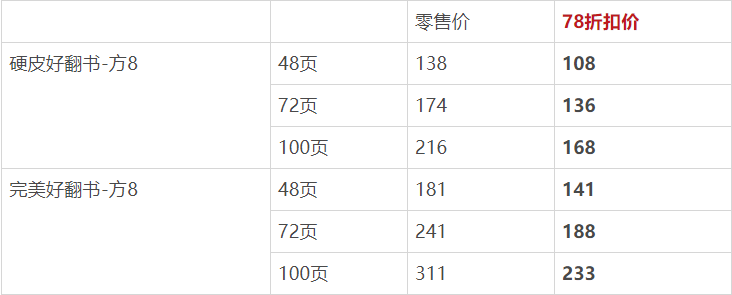 硬皮和完美两款都有48页/72页/100页可供选择,根据每本想安排的照片总数选择页数就好。