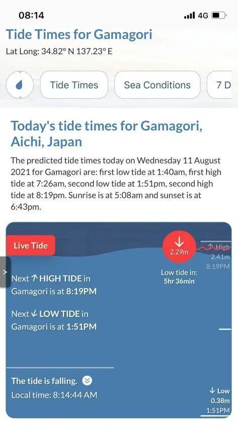 查下这片海域的潮汐时刻表。下午快两点的时候开始涨潮,我们决定11点左右去看看。