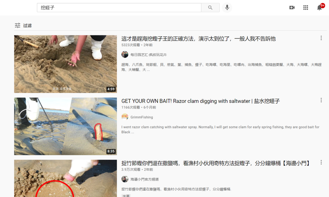 我上油管输入“挖蛏子”,就出来了很多“蛏见愁”的达人分享。都说自己的方法独家又厉害!分分钟爆桶什么的。