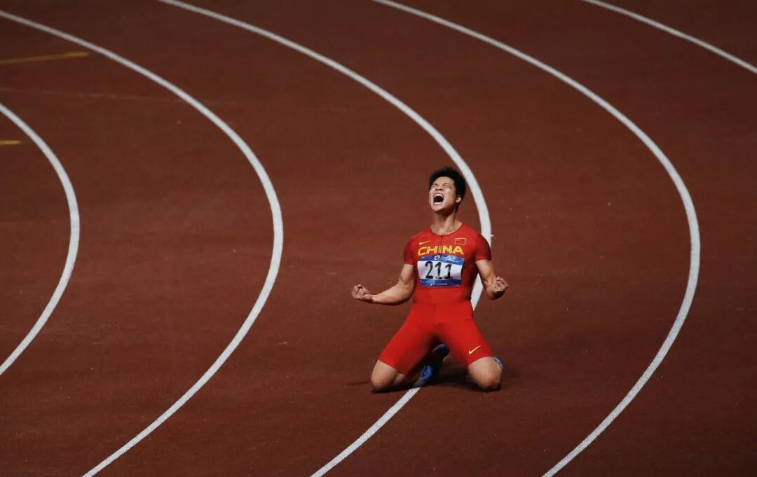 2018年8月26日,苏炳添夺得2018年雅加达亚运会田径男子100米冠军(视觉中国供图)