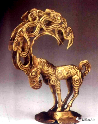 鹿形金怪兽:战国时期,出土于陕西神木县纳林高兔村,怪兽两角由两两相连的十六只鸟构成,反映了当时匈奴的金银器制作的高超水平。