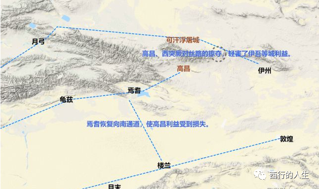 从楼兰进攻高昌的路线是沿罗布淖尔前行,然后向北翻越库鲁克塔格进入车师故地。直接攻击高昌,这条道是汉代的墨山国之道,墨山国早已被焉耆所吞并,会经过焉耆国属地,所以要事先与焉耆王沟通行军路线。李柏劳师远征,与赵贞交锋发生了什么故事没有记录,可能是在高昌城下,也可能是在行军途中,总之,李柏兵败,逃回了楼兰。写给焉耆王的信的草稿并没有销毁,而是塞进了土块墙的缝隙之中。楼兰与高昌的关系中断。
