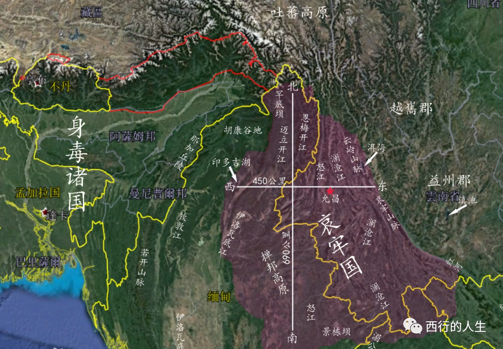 这个地方也被称为“哀牢国”。位置大概在今天的“保山盆地”,疆域在云南省一部和缅甸及老挝的部分地区。刚好挡住了蜀地通往身毒的路。