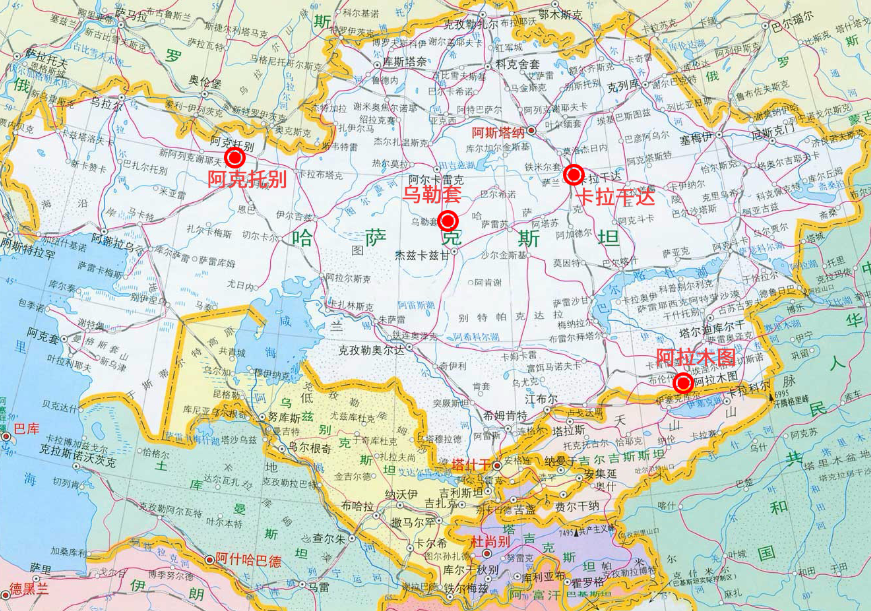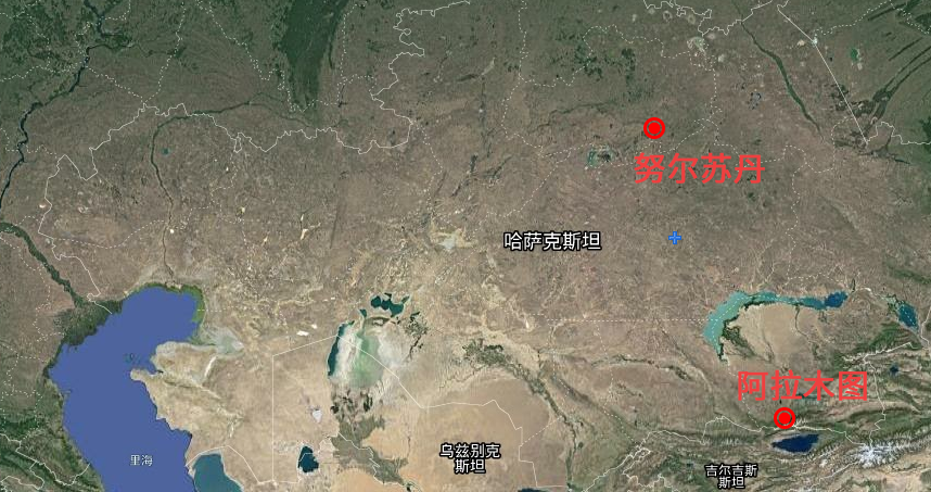 ▲努尔苏丹和阿拉木图在哈萨克斯坦的位置